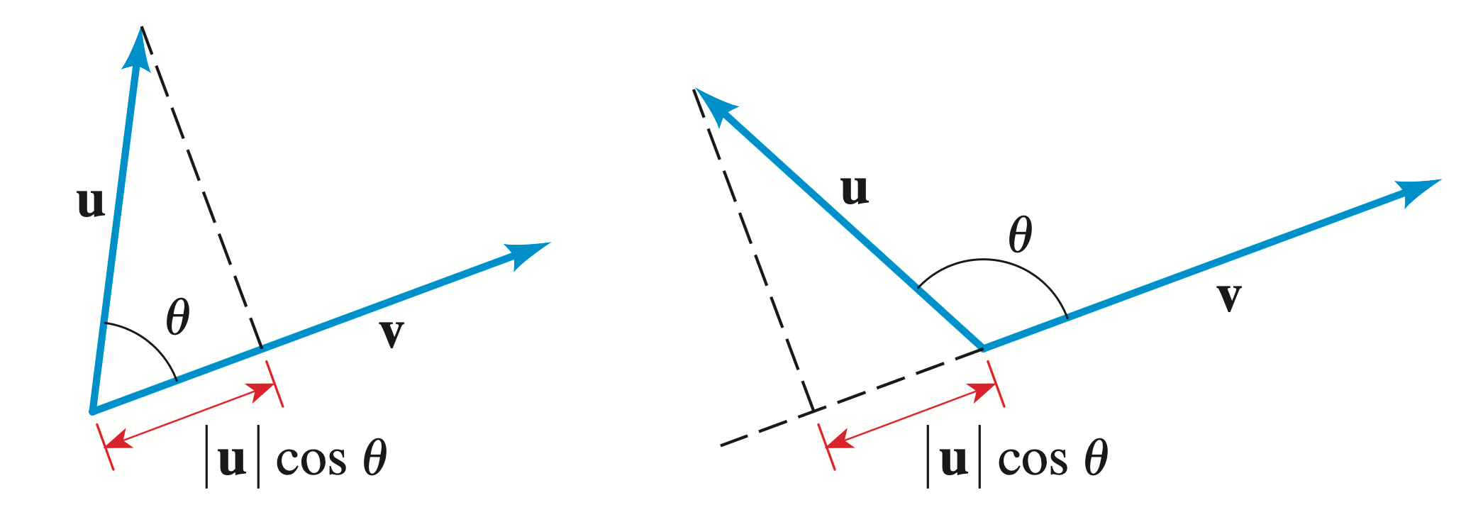 which allows us to find the angle between two vectors by their components.
