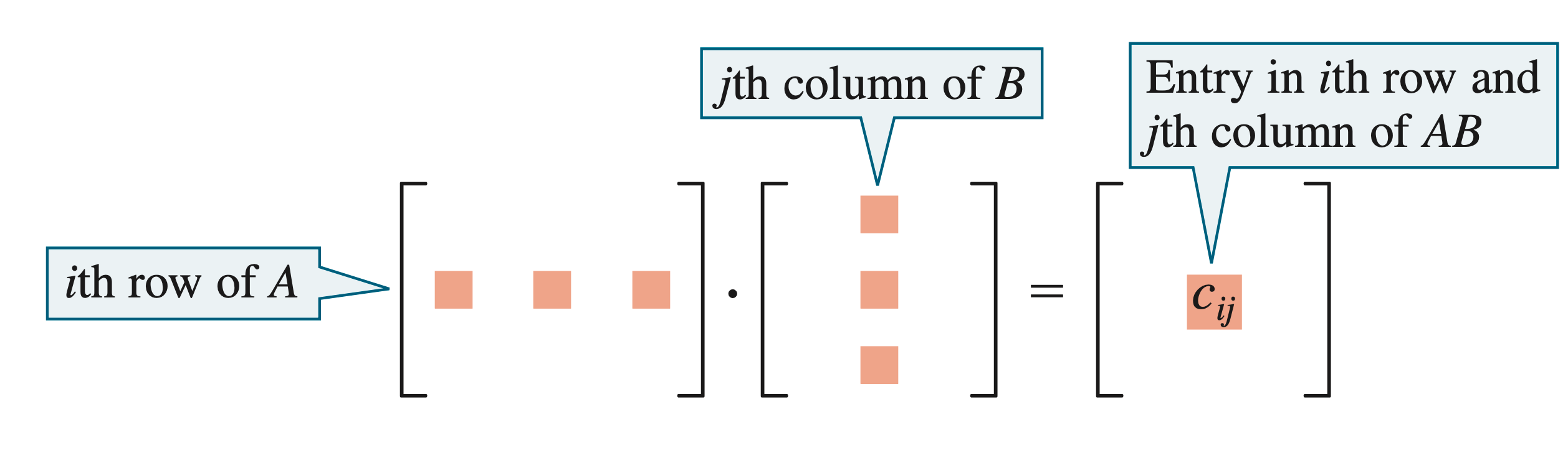 where the entry in the th row and th column is the number obtained by multiplying corresponding entries of the th row of and the th column of and adding the results.