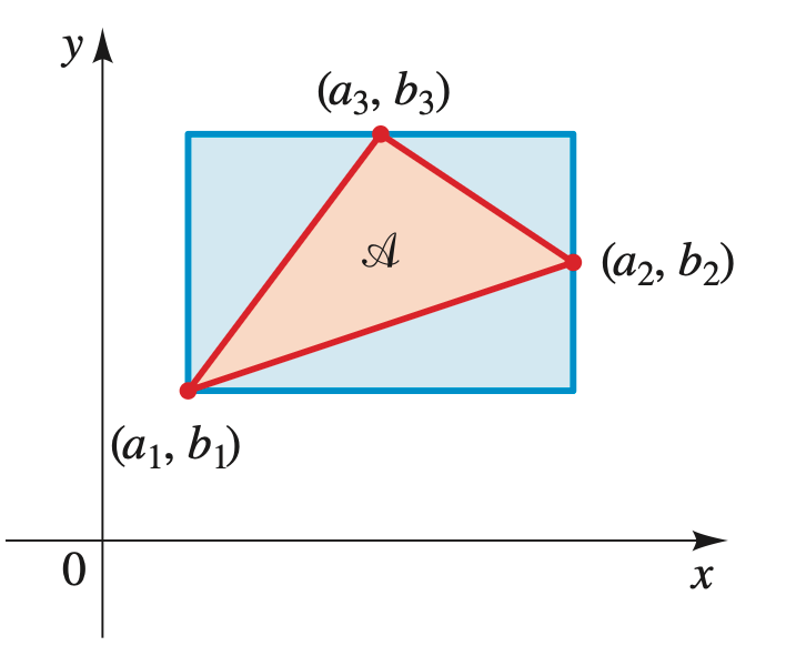 Determinants also provide a simple way to calculate the area of a triangle in the coordinate plane. If the triangle has vertices , and , as shown in the figure below,